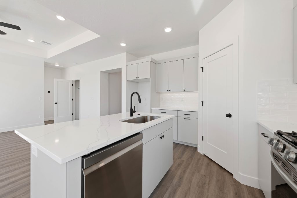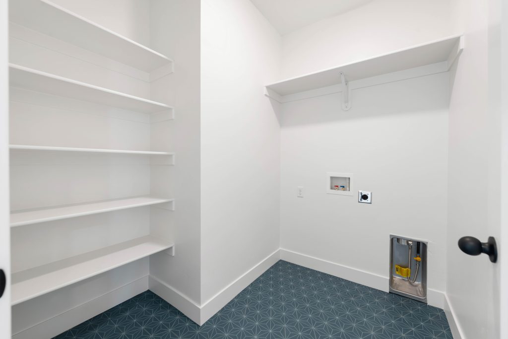 Practicality shines with the laundry room located right across from the bedrooms, making it easy to keep up with daily chores. Moving into the main living area, families will love the open-concept design where the kitchen, dining area, and family room flow together. The kitchen’s large island with sink doubles as a homework spot, snack station, or family gathering place, while the generous walk-in pantry provides plenty of space for storing everything from lunchbox supplies to weekend groceries.